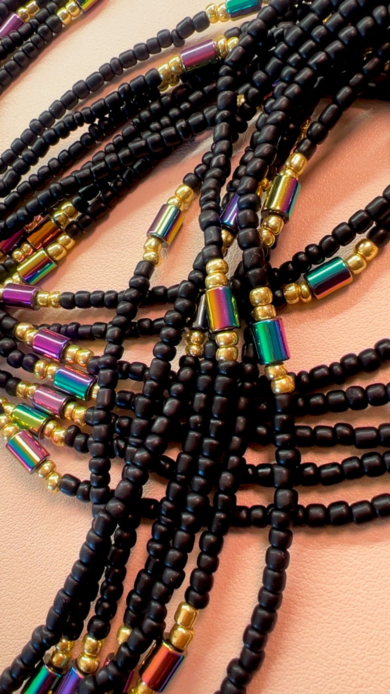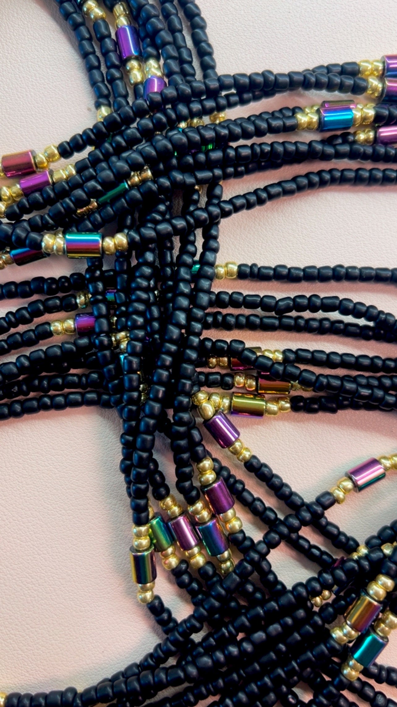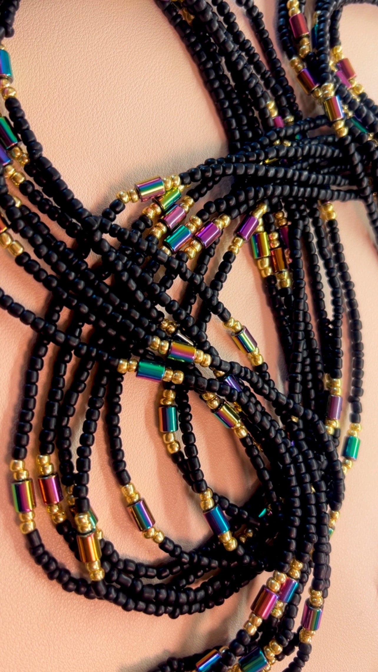 Handmade, single strand waist beads.